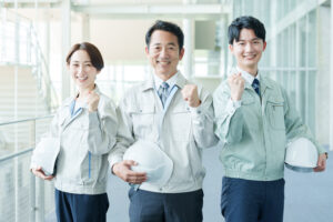 ガッツポーズをするエンジニア 作業員
