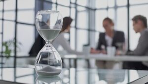 hourglass on a desk in an office